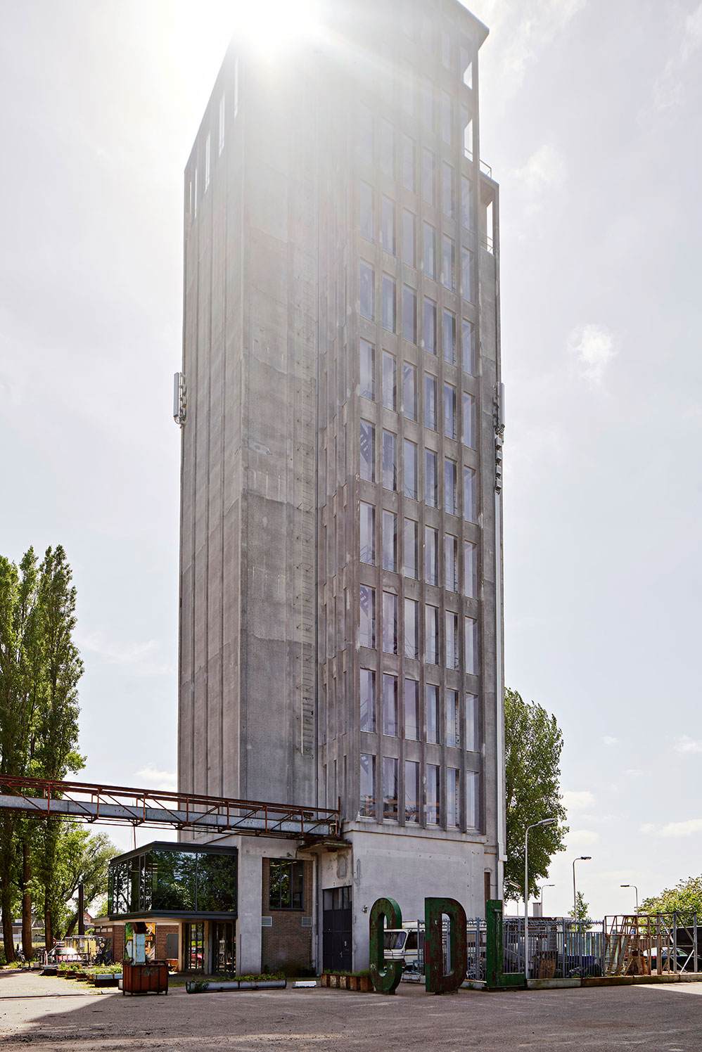 Looking down towards the surrounding area, you quickly notice many more industrial sites and buildings scattered around the silo. Some, like the black silo next door which was turned into a food hall, and the old grain hopper turned one-room hotel called LucyCube, have already passed the test to be preserved. “I volunteer for the Foundation for Industrial Heritage Deventer, and am involved with a project where we mapped out the cultural and industrial value of buildings in the surrounding industrial area. Most of them aren’t on the protected list, but it’s good to document them preemptively and hope it will inspire the owners once they start thinking about what to do next,” José explains.