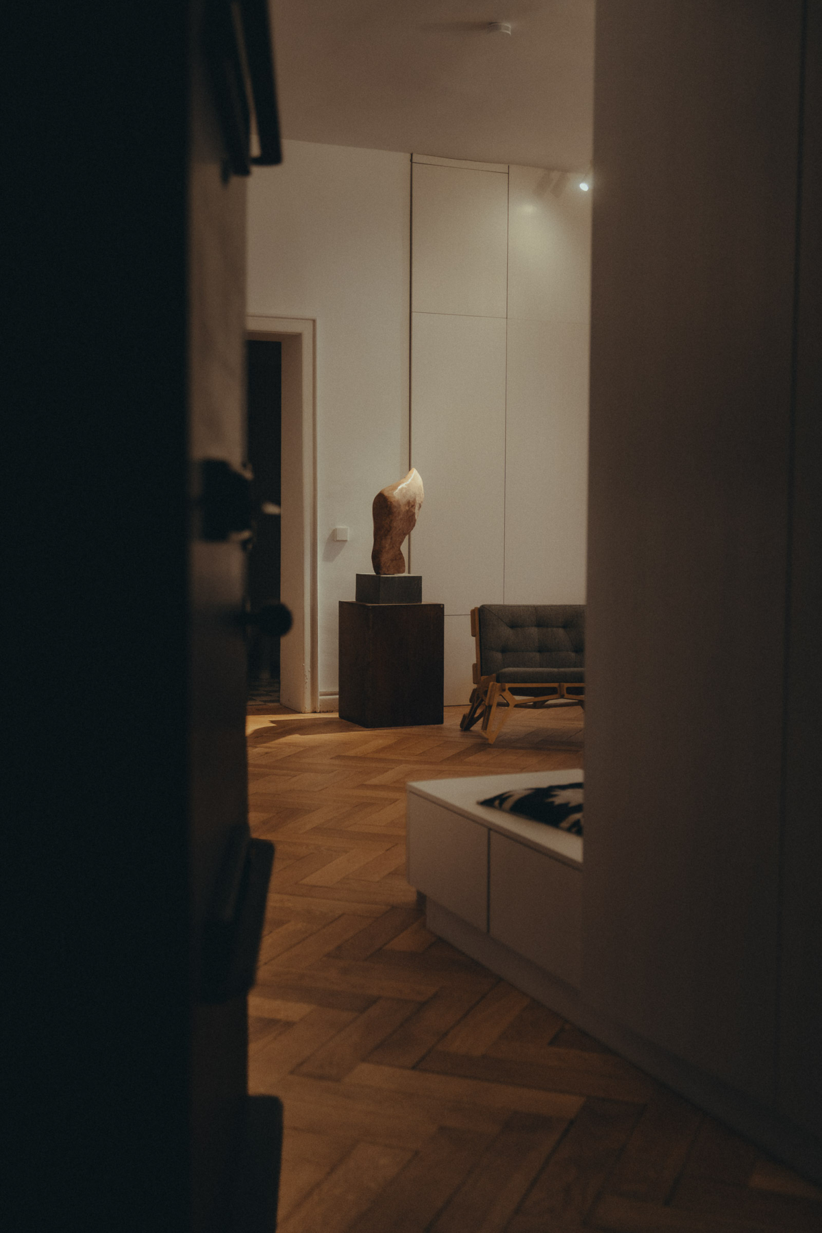 Lighting is also rather significant: I like to have lots of different possibilities: Small lights, and dimmers so I can set the mood. We have spotlights on our artworks, almost like in a museum. Very atmospheric. Sometimes I also like very bright light. In my studio, I have very white light, which keeps you awake and makes artworks look really good.
