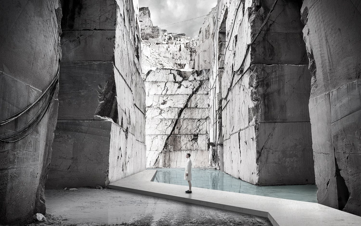 He placed his conceptual design “Lost Landscape” at the heart of a quarry which would inspire individuals to confront their preconceived ideas about consumption. There is a notable interplay with positive and negative space as well as the presence of both industrial and natural textures. Monolithic concrete walls and entrances would allow people to navigate the extraction site as if it were a system of naturally occurring caves. See more on the winning Carrara Thermal Baths Competition project here.