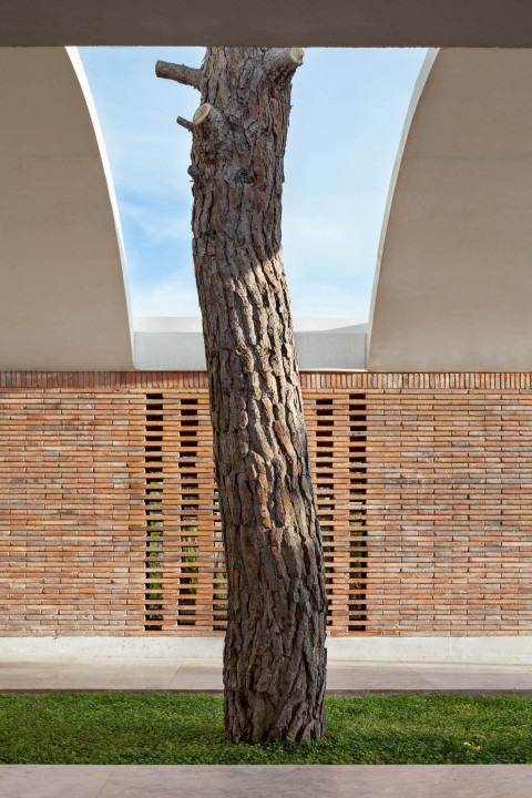 Limestone was eventually used to integrate a terrace and pool seamlessly into the existing structure, had been found in nearby Girona, left over from another project. The recycled marble pieces came in all different sizes, creating an intricate floor pattern, in which every piece was painstakingly carved to fit—true to the name of Peratallada, which means carved stone. An evenly meticulous procedure created the look of Casa IV, an award-winning residential project in the countryside outside of Elche, in the southeast of Spain. As part of a play with the house’s indoor and outdoor spaces, horizontal lines were accentuated by one central element: a thin and oblong brick, designed and produced in collaboration with a local ‘bobila’ (brick maker). “We became obsessed with not having to cut those bricks for the layering,” laughs Iborra Wicksteed. Hence no material was wasted in the process.