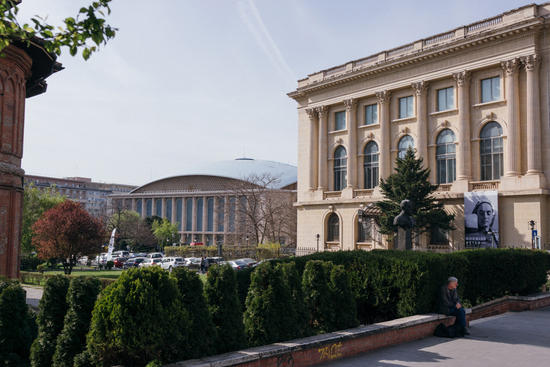 Her music certainly reflects a more international sound. Her band, YellLow, was signed by Universal Music Romania for their poppy electronic sound, bringing in dubstep, rap, and house influences. “We sing in English, we think it sounds better. If you listened to a bit of Romanian music I think you’d hear how it’s different to mine,” she says, laughing. YellLow have been performing all over—they were in Beijing a few times through 2017. But that evening YellLow were supporting the local scene, performing alongside Modeselektor and Nightmares on Wax at Control club for the launch of Electronic Beats Romania. “I sang in a cover band too, but last year I stopped playing with them and began a solo acoustic act,” she tells me—she plays all over the city. Luiza stops at the museum of George Enescu, the composer regarded by many to be the most important musician in Romanian history. The building itself is Art Nouveau, with organic patterns swirling around every detail, and a great leafy awning in wrought iron and clouded glass stretching out over the door . “It used to be the palace of Cantacuzino, a noble family with a great history,” she says as she walks through the gates, before heading into a quiet square situated just behind the building. “I discovered this place two years ago I think. I went in alone once and I stayed a couple of hours. It’s relaxing. The street is so busy, but it’s quiet here. I like it for that.”
