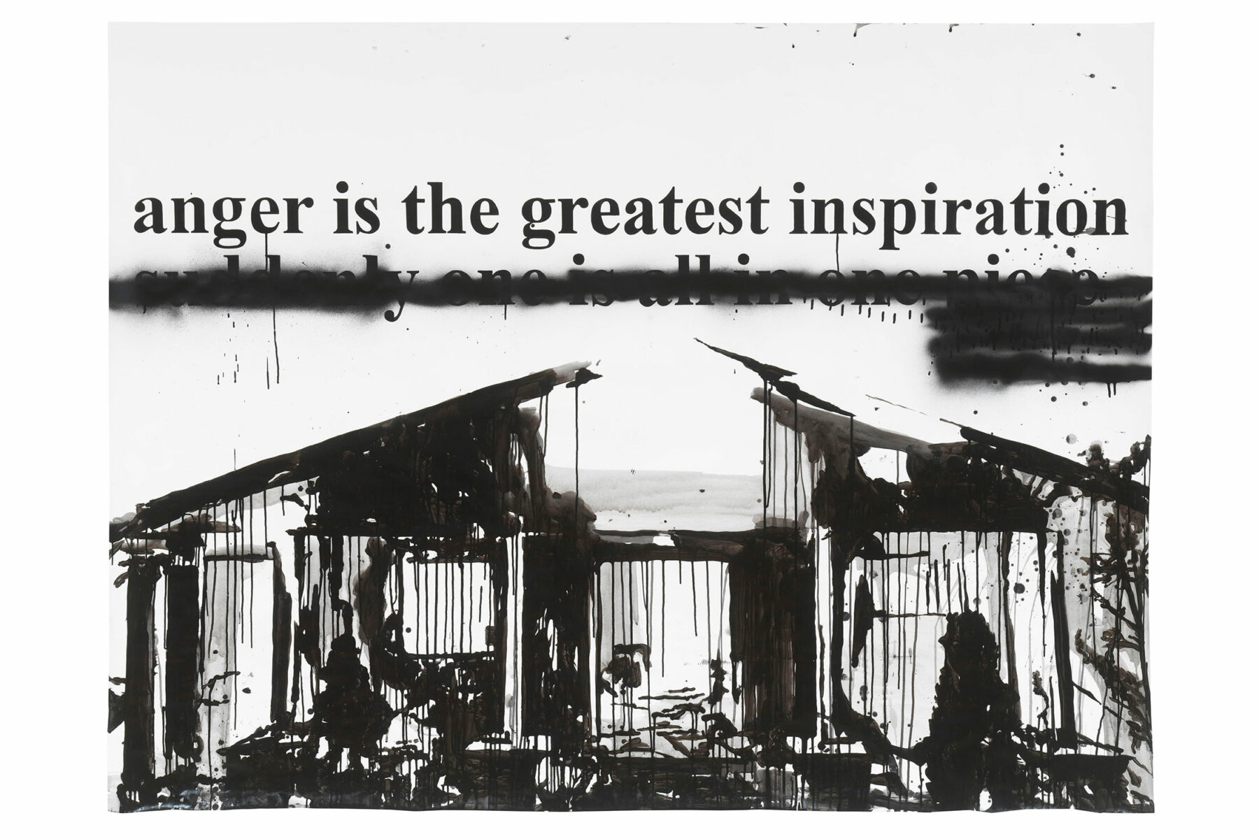 While she may bristle at suggestions that her work is aggressive, Bonvicini does recognize that historically anger has been a vital tool in both the feminist and the civil rights movement. An avid reader—during my visit she name-checks Anne Sexton, Julia Kristeva, and Anaïs Nin—Bonvicini is currently working on a series of drawings based on quotations of female writers and personalities about this very topic. She has made multiple spray paint drawings, for instance, based on the line “I cannot hide my anger to spare you guilt” from the essay collection Sister Outsider by Audre Lorde. “I like to think that feminist angriness can be an absolutely positive and constructive power,” she explains. “Unlike other types of anger it has a historical foundation; it has a goal.”