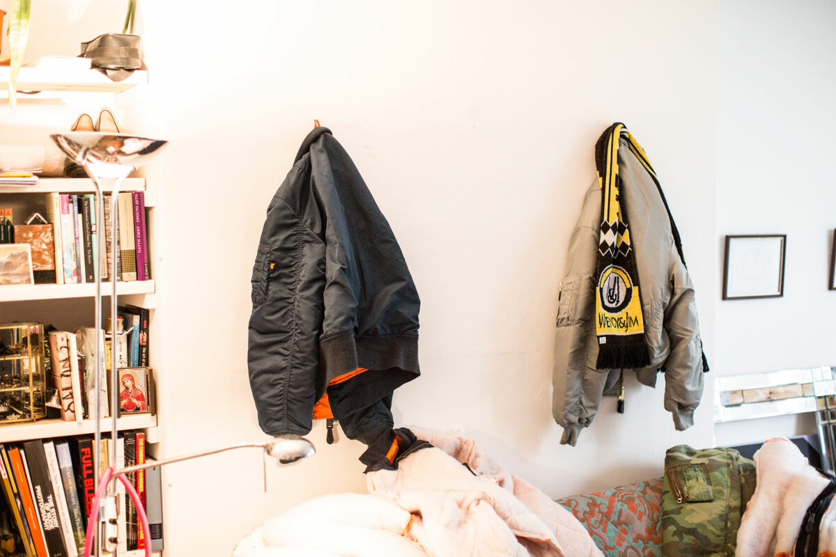 One of his most prolific series is his work with bomber jackets. “It came about after I asked the gallery staff at my exhibition in Stockholm to all wear white t-shirts, bomber jackets and blue jeans. We did performances where we had a mail guy dancing on a pole. Looking through the pictures of the performances, I realized I loved having these bomber jackets everywhere, and wanted to start working directly with them.” Part of this urge to explore the iconography of the bomber was born out of his interest in subcultures. “Especially in the working-class cultures, mainly because I see myself being part of that. As a teenager I had to decide whether I wanted to be academic and go to university, or whether I wanted to start repairing cars.”