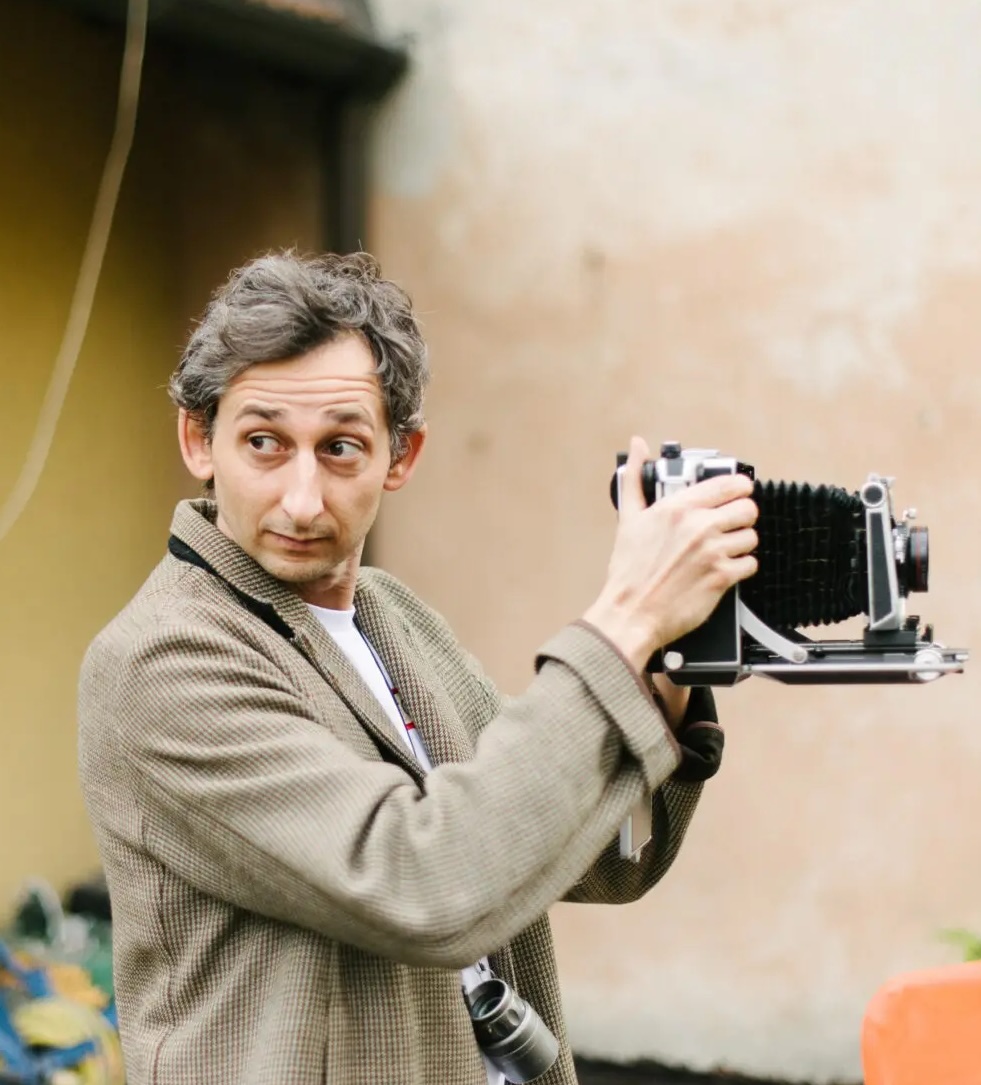 For Pierpaolo, vulnerability is a key ingredient in producing a strong image. When I do a portrait, I shoot very few pictures, because what interests me is the tension you get at the very beginning. I don’t want the person to get too confident at the shoot. That tension, it’s something real. It’s something you cannot control.” He brings over his enormous Linhof Technika, a metal folding camera that looks ancient. To create this air of tension, Pierpaolo often uses the impressive device as a tool. “First of all you don’t need to shoot a lot. It’s single film. And, it’s a camera that gives the subject a very strong feeling of seriousness. Since I shoot a lot of people who are involved in culture in different ways; artists, actors—they recognize the special camera. It has a presence during the shoot.”