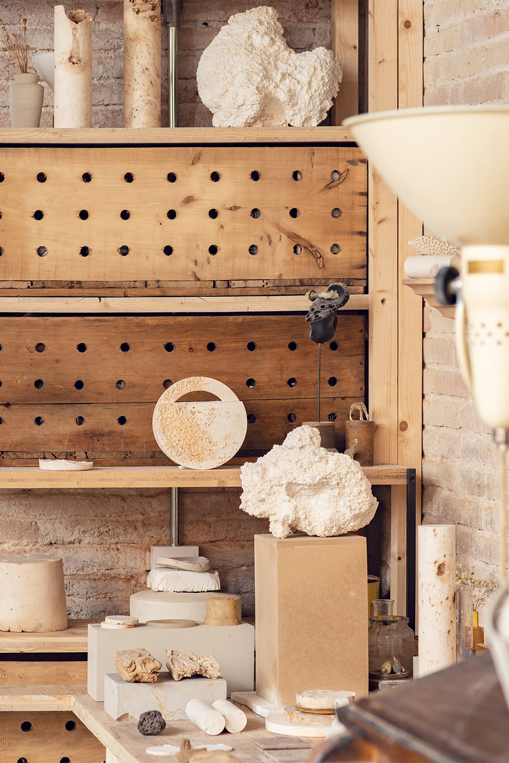 Studio Turbina is a Barcelona-based art and design studio founded in 2018 by Minerva Capdevila and Mateo Fumero. Formerly a dry cleaner’s, the couple’s workshop and home is located in Sants, a neighborhood where abandoned, early 19th-century textile factories are being repurposed by independent manufacturers and artisans. Turbina’s work is characterized by a strong interest in materials and by a range of sculptural practices that respect the materials’ natural language and foreground its ancient symbology. To find out more about studio Turbina visit their evocative website or follow them on Instagram. And to continue reading about design and manufacturing check out our story about ceramicist Iris Roth or read about artist Analusia Corrigan thoughts on clay and mental health.