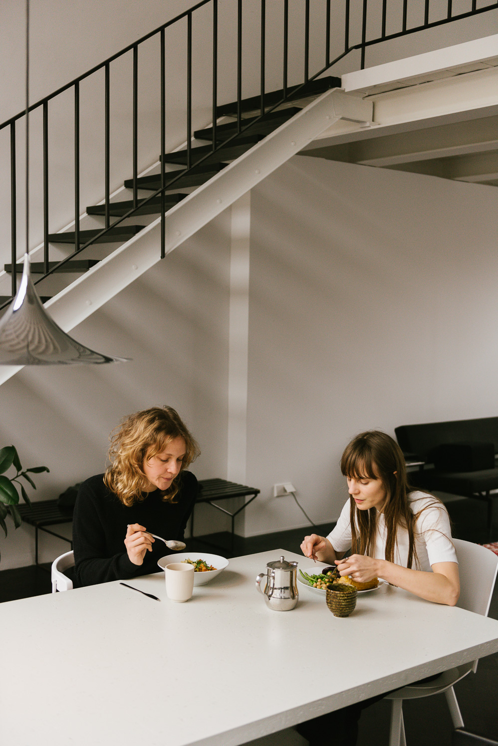 A sweet fragrance of oriental spices fills the large, bright Berlin studio and the light sounds of Frank Ocean’s song, Ivy can be faintly heard in the background. Textile designer Nadine Goepfert has temporarily swapped her scissors and fabric for cooking utensils to prepare lunch in the common kitchen of her studio. “We don’t do this every day but every now and then we cook, eat, listen to some music together. That makes for a nice break from the work!”