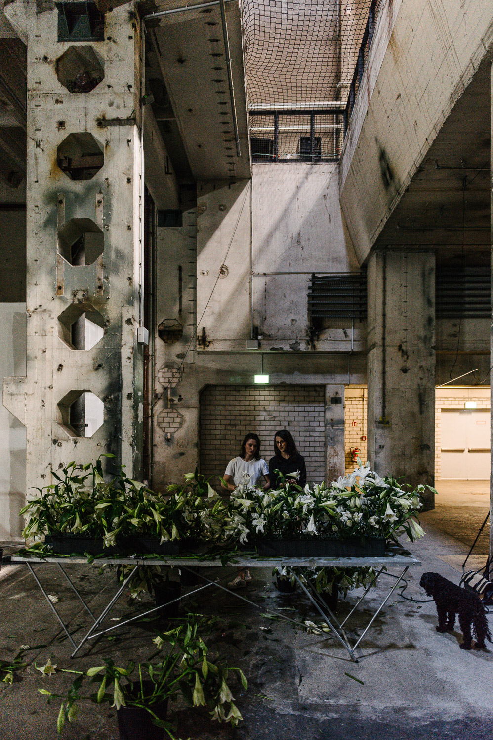 “Juan Mendez approached us to help him execute the staging for ‘Optimistic Decay’, a showcase to celebrate and mark the closure of the Jealous God label as part of the 2016 edition of Berlin Atonal. Hundreds of stems of lilies were used to create the set for the show and there was a thick scent of fully bloomed flowers in the air.”