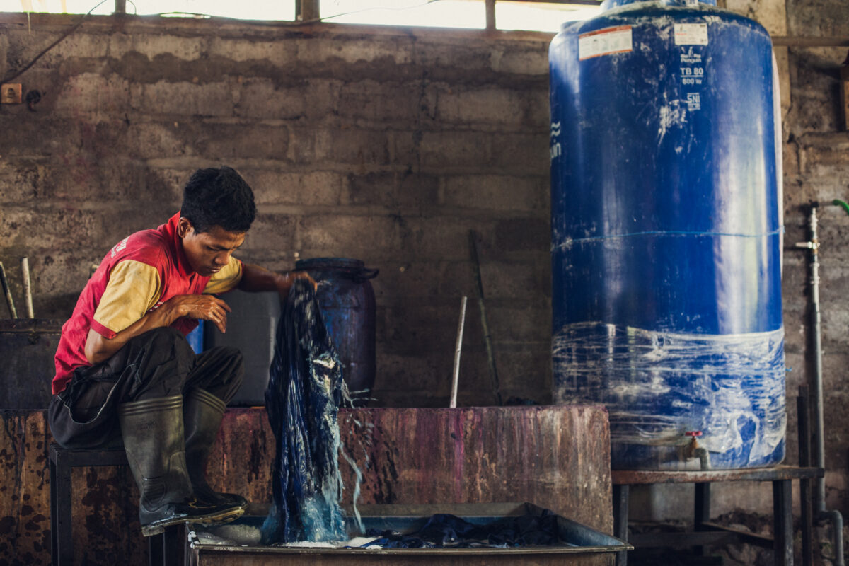 At first, it’s almost jarring to see Dan standing against such a backdrop. His wild hair and beard can’t hide his still-boyish looks and skin still predisposed to sunburn. The tinted sunglasses, boldly patterned shirt from a cult Japanese brand and swimming pool-colored trousers conjure someone from the cover of one of his beloved cosmic disco records, circa Italy in the late seventies. Yet it’s impossible to see cynicism in the way he has immersed himself in the culture here. He interacts warmly and reverentially with the clay-covered workers—and later in the day with the indigo dyers responsible for the beautiful textiles that adorn the interiors of Katamama. Their understanding of what Dan is trying to achieve seems to transcend his faltering Indonesian-with-a-Geordie-accent. Just in case it doesn’t, Dan also makes sure they get to experience first hand the fruits of their labor. Workshops with local indigo-dyers and ceramicists are arranged not just as a recreational activity for guests but as a way of encouraging the artisans to persevere with their traditional craft in the face of the rampant commercialization their island is battling. “It’s tough,” says Dan. “There’s a whole generation who you hope will carry on these traditions, rather than just being enticed by a job in a new phone shop or whatever.” What’s never in doubt is just how intrinsic the local craft is to the luxury experience that Katamama provides. Every last detail, from the handwoven rugs to the hand-molded soap dishes is impossible to separate from the people who have worked on them.