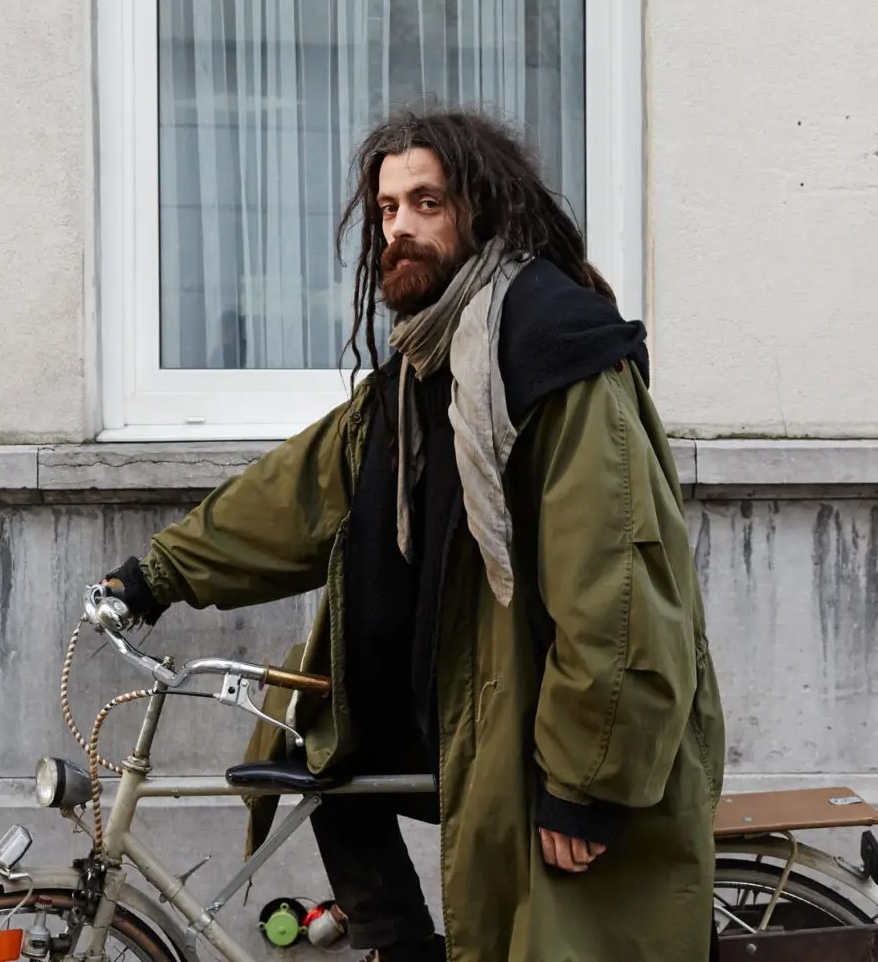 Born and raised in Antwerp, the designer’s menswear brand blends ethnic tradition with western characteristics in a manner that encourages the human body’s free movement rather than setting limitations through predefined sewn structures.