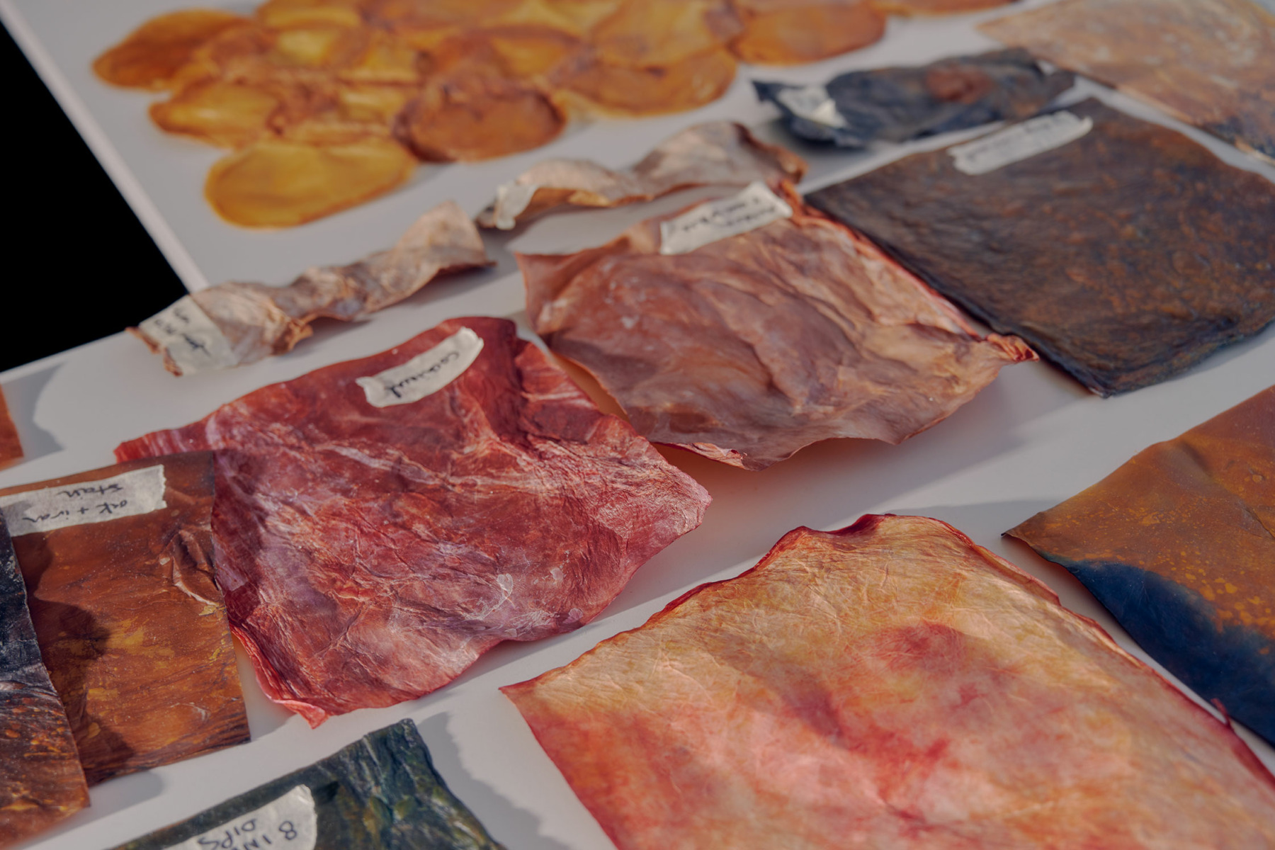 At present, and while Céline is laboring towards a “personal mythology” book that will tell her own story, her team is experimenting with bacteria at their Slowhide lab, which, she says, “will be part of the Slow Factory Institute very soon.” “We are vertically farming bacteria,” she explains, “feeding it tea and coffee waste, and it’s growing. And it’s weaving, bacterial nano-cellulose, which looks and feels like skin.” What stories, one wonders, might emerge there? Céline who, too, is curious, observes that we have a lot to learn from our tiny ancestors.