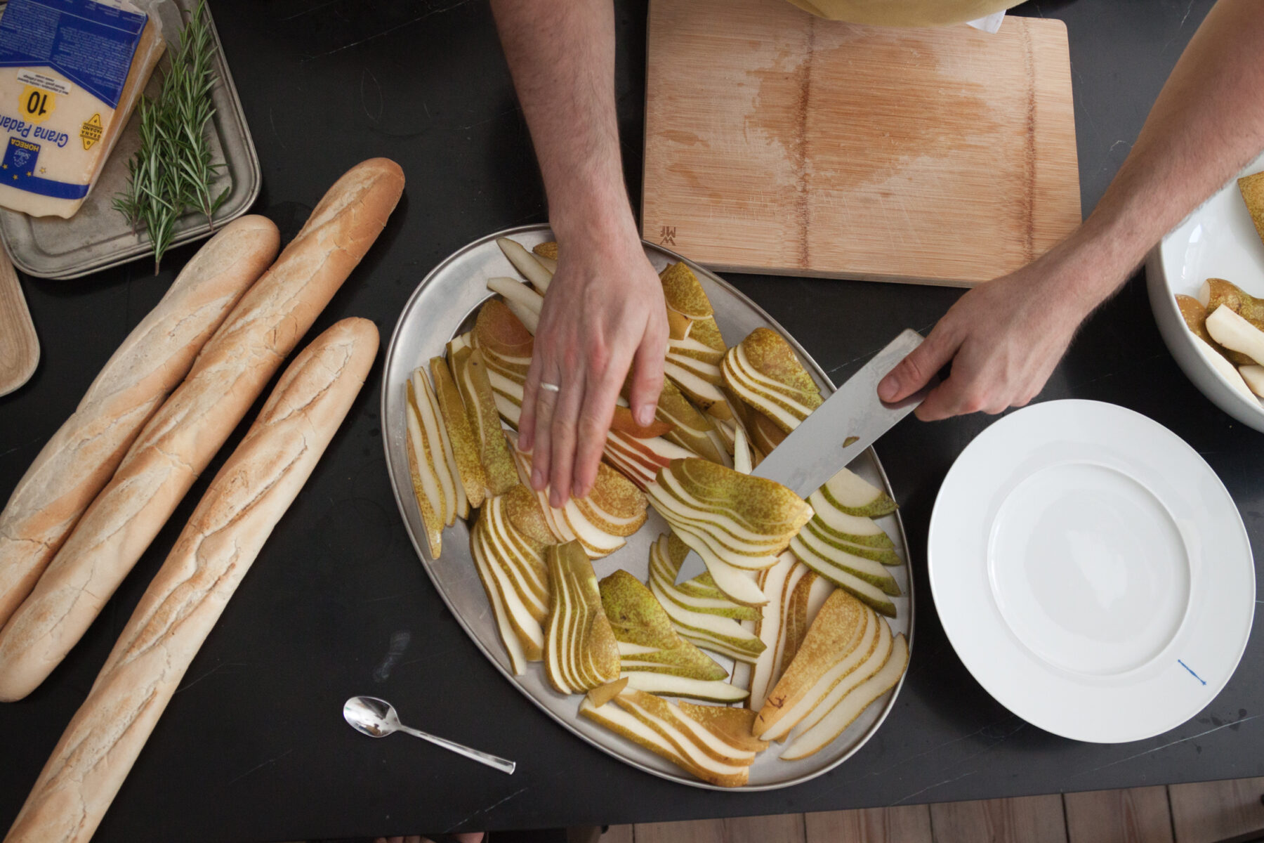 Read on for the ingredient list for one of the canapés and the recipe for Max’s pear salad.