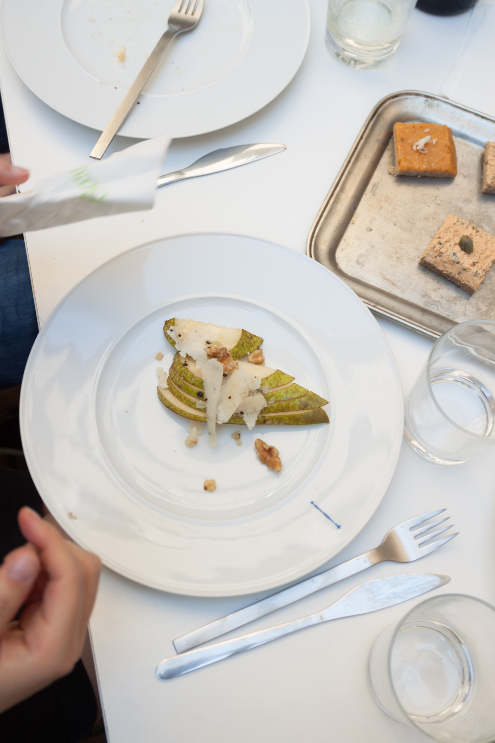 Members of the FvF team were eyeing up the pear and walnut salad as the olive oil, parmesan and sea salt was still being sprinkled on top. The mixture of the pears’ sweetness and the savory combination of walnut and parmesan was a real treat. The salad and canapés were the beginning of an extended lunch of indulgent delights.