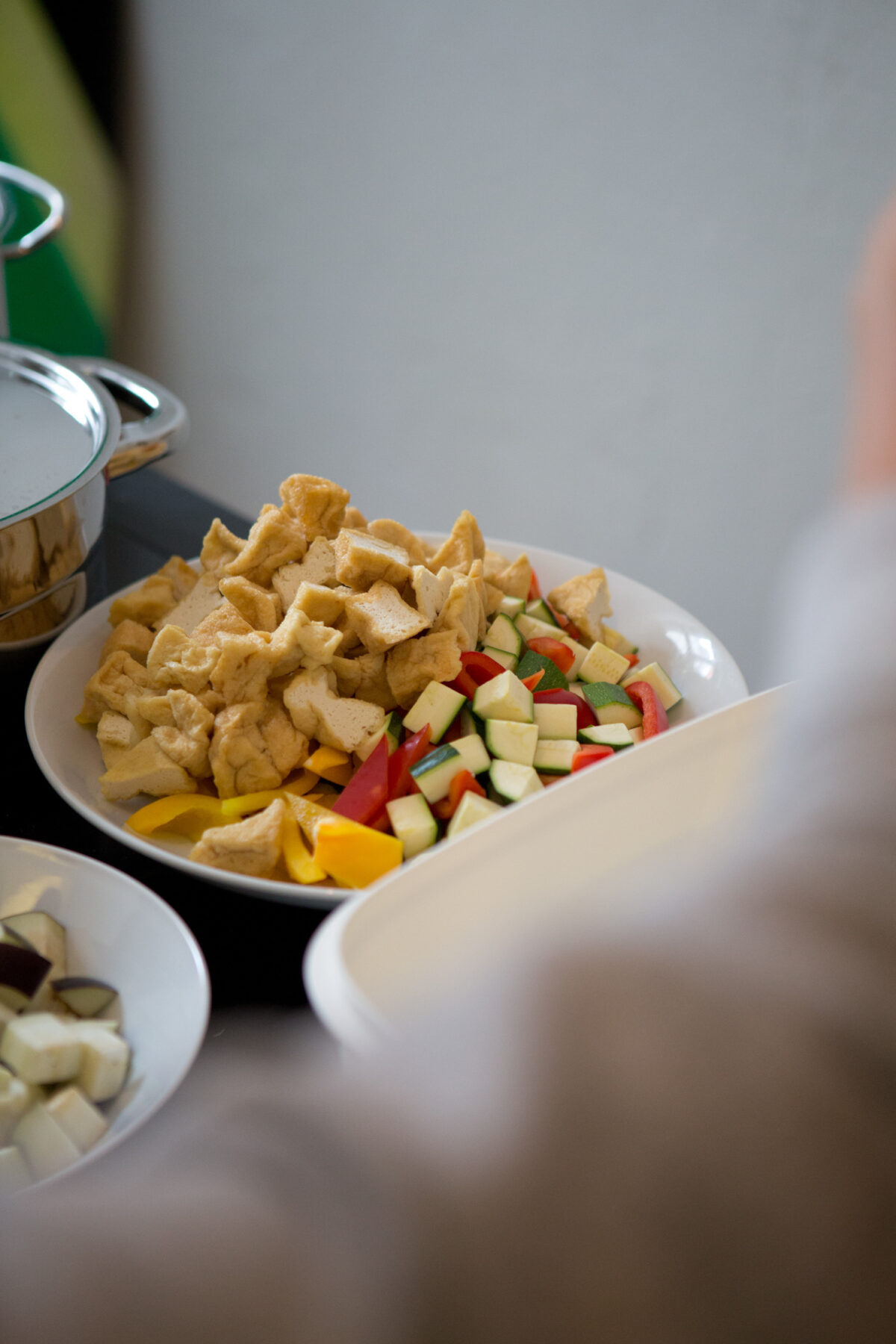 - Add the tofu, paprika and the courgettes and cook for 2 minutes.