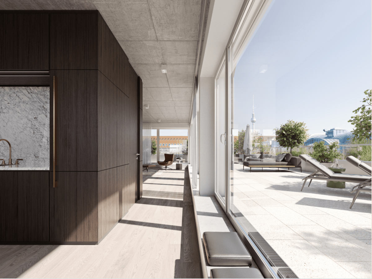 In an urban and diverse neighborhood in Berlin-Mitte, an exclusive retreat has been created with the new “AM TACHELES” urban quarter. Crafted by renowned architectural firms Herzog & de Meuron, Grüntuch Ernst Architekten, and Brandlhuber+ Muck Petzet, this enclave comprises six city residences, top-tier offices, and a refined shopping arcade. Each residence, uniquely designed, forms an elegant ensemble.