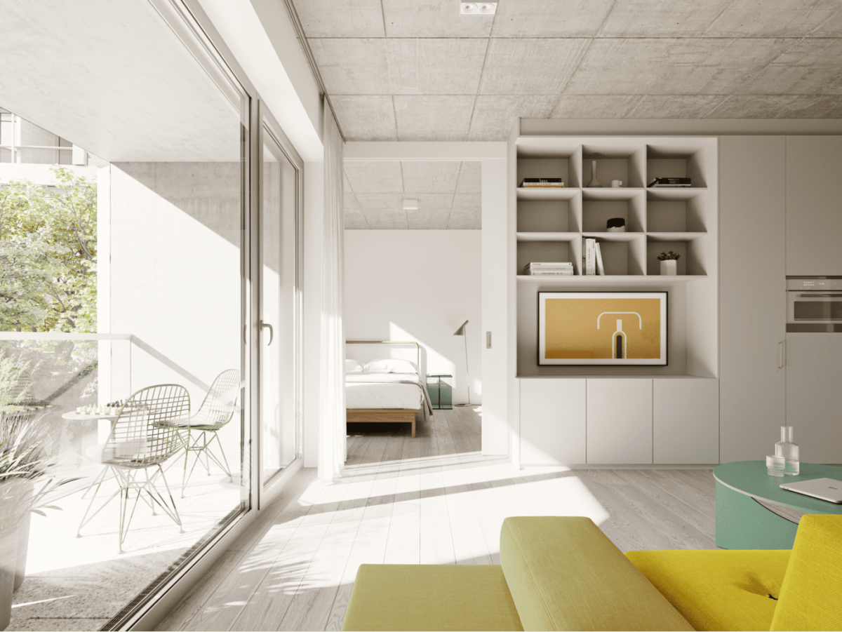 Committing to the interior design point of view, ceiling-high room divider furniture in various colors delineates functional areas, creating a unique sense of space. Exposed concrete and meticulously chosen materials from European manufacturers contribute to the high-quality finish, crafting a distinctive ambiance as unique as the city of Berlin itself.