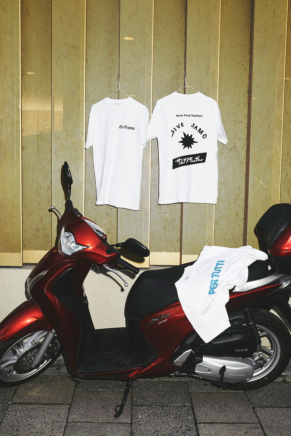 Financially ambitious and multitalented as they are, the pair were not content with just being Munich’s go-to place for records. “A music store on its own wasn’t a viable business model for us. We wanted to branch out and extend our brand to other things that interested us.” So they started making covers, flyers, and merchandise—fan scarves and T-shirts advertising their label with ironic lettering in a bright fanzine style.