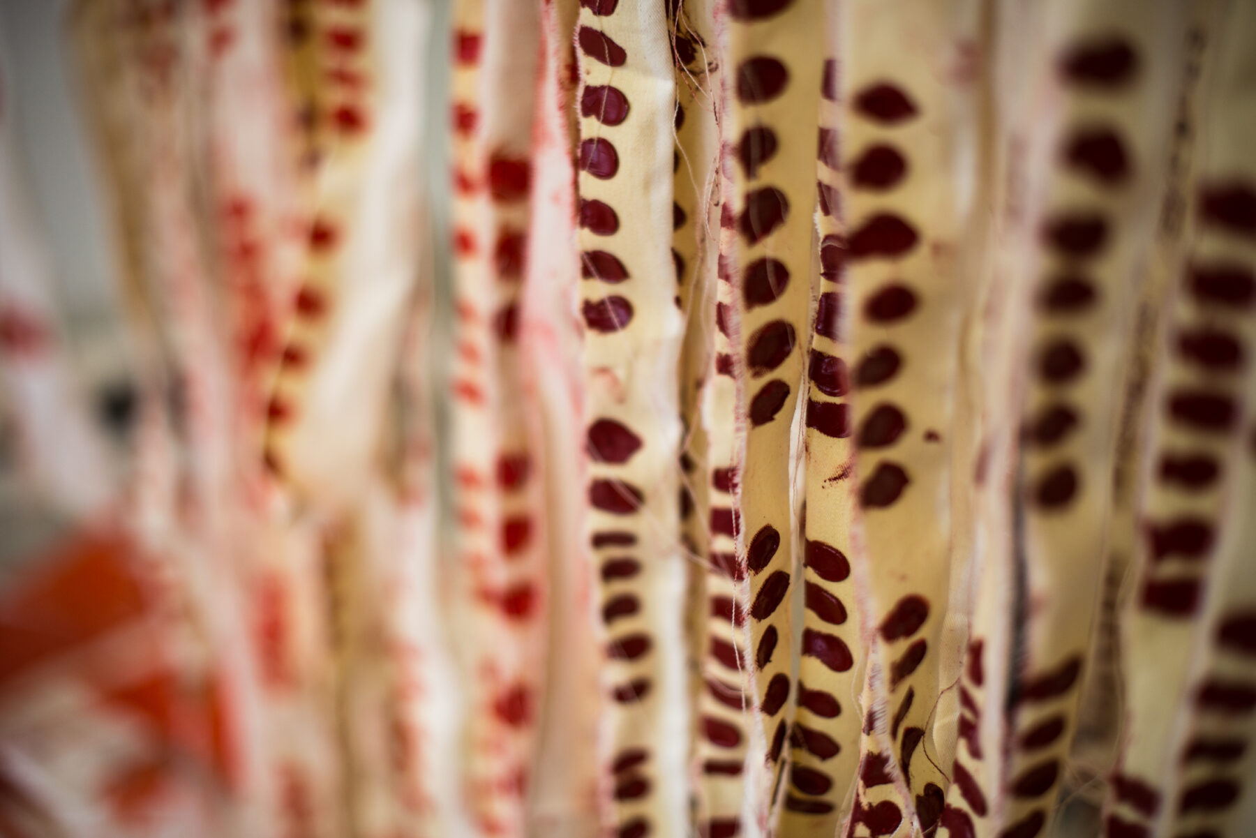 “These works are about communication. The single ‘Bollen’ are like elements of a piece of music, or flags, or skin that’s been branded.”