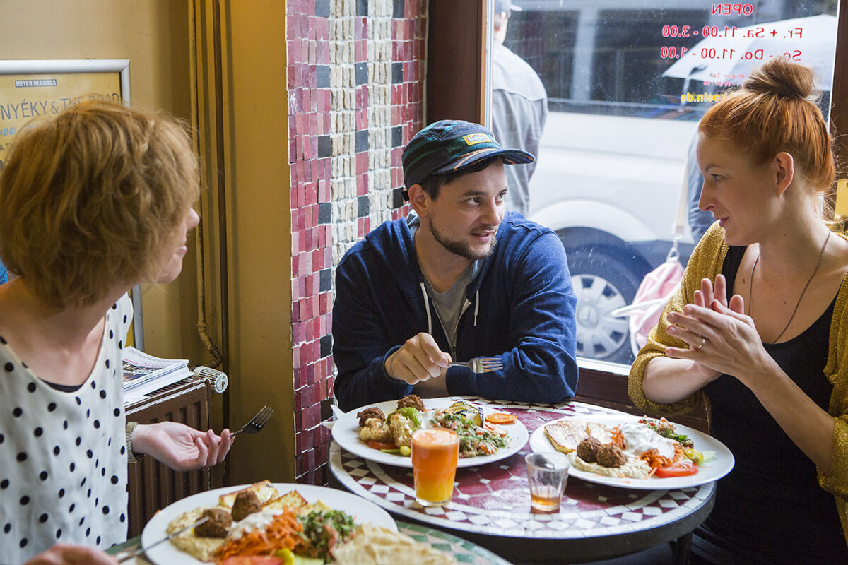 We browse for nearly two hours, then our stomachs start to growl. Daniel, what’s a good address for a quick honest meal? Daniel’s answer is quick: The “Habibi” in Zülpicher Strasse. “Habibi” is the Arabic word for “favorite” – and the Lebanese restaurant becomes a favorite for many after their first visit. We arrive – and while we’re still studying the menu we’re served an unasked for cinnamon tea.