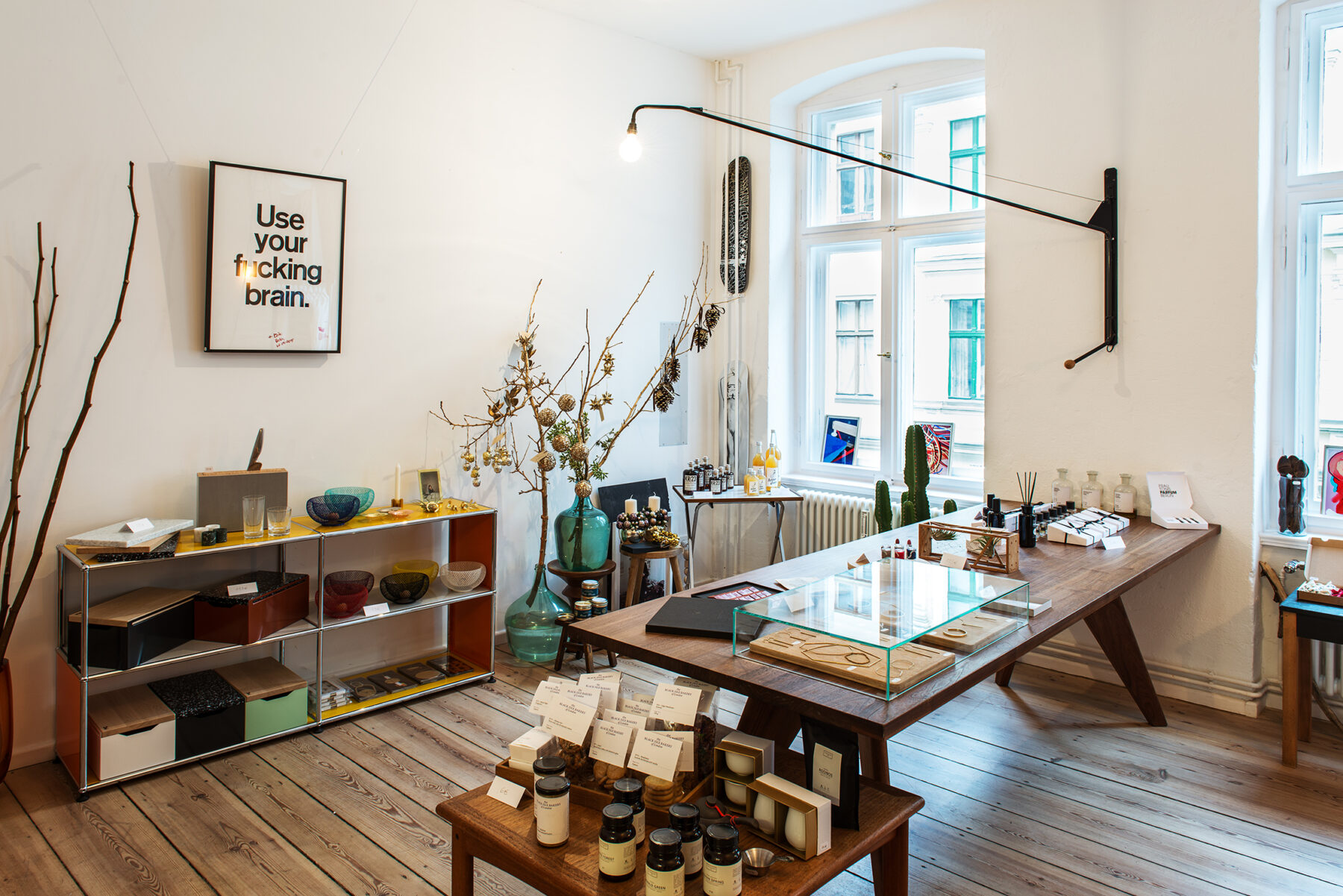 With unique gift-giving in mind, some items have been crafted especially for our store, such as the exclusive FvF-edition room fragrance by Frau Tonis Parfum. Inspiration from our home city runs strong, with Berlin-based fashion designer Hien Le presenting a selection of womenswear and menswear, as well as a range of bold, framed prints by prolific typographer and designer Erik Spiekermann.