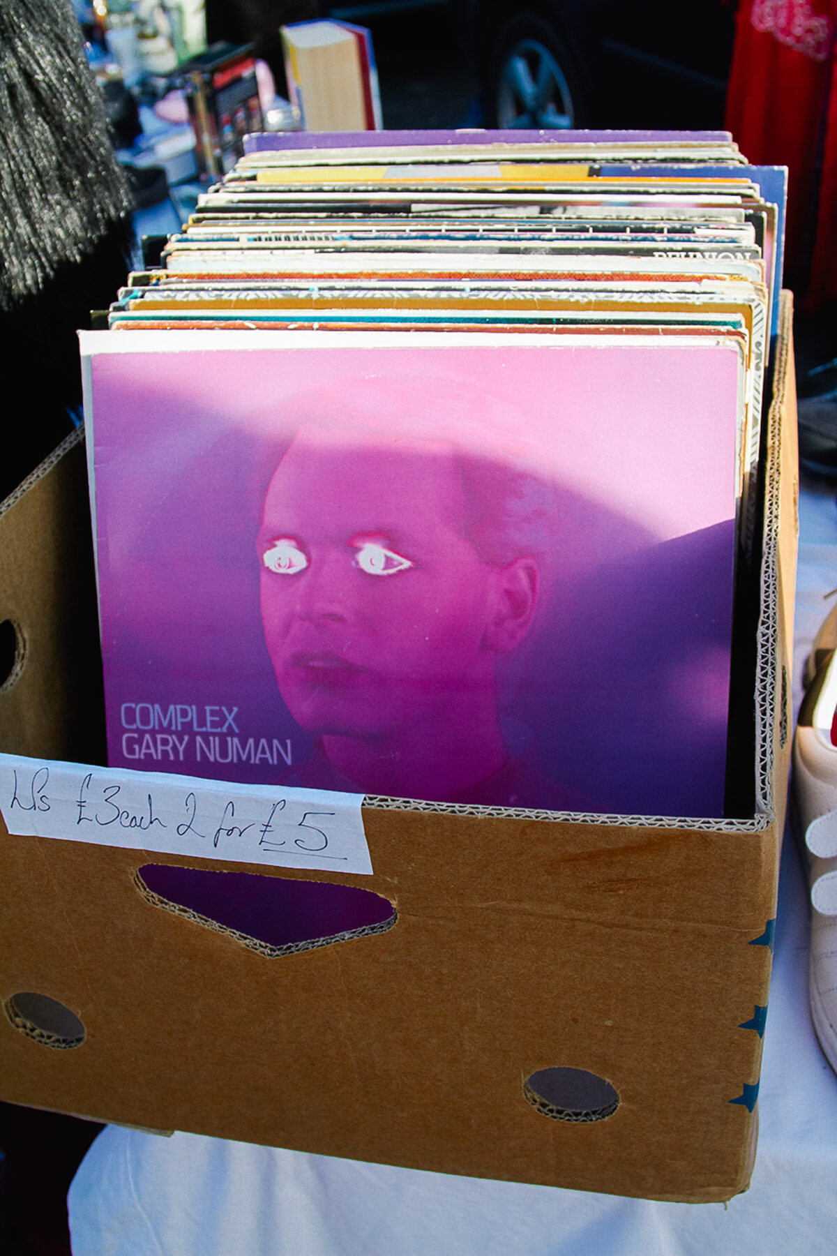 At the foot of the next table is an open suitcase with a bunch of old screwdrivers sitting forlornly inside under an antique globe. Just behind, three gilded lamps stand proudly on the roof of a Ford Mondeo. Nothing seems out of context or unexpected. “Four pounds for the johnnies,” shouts a seller as a punter eyes up four packets of condoms in a tupperware box.