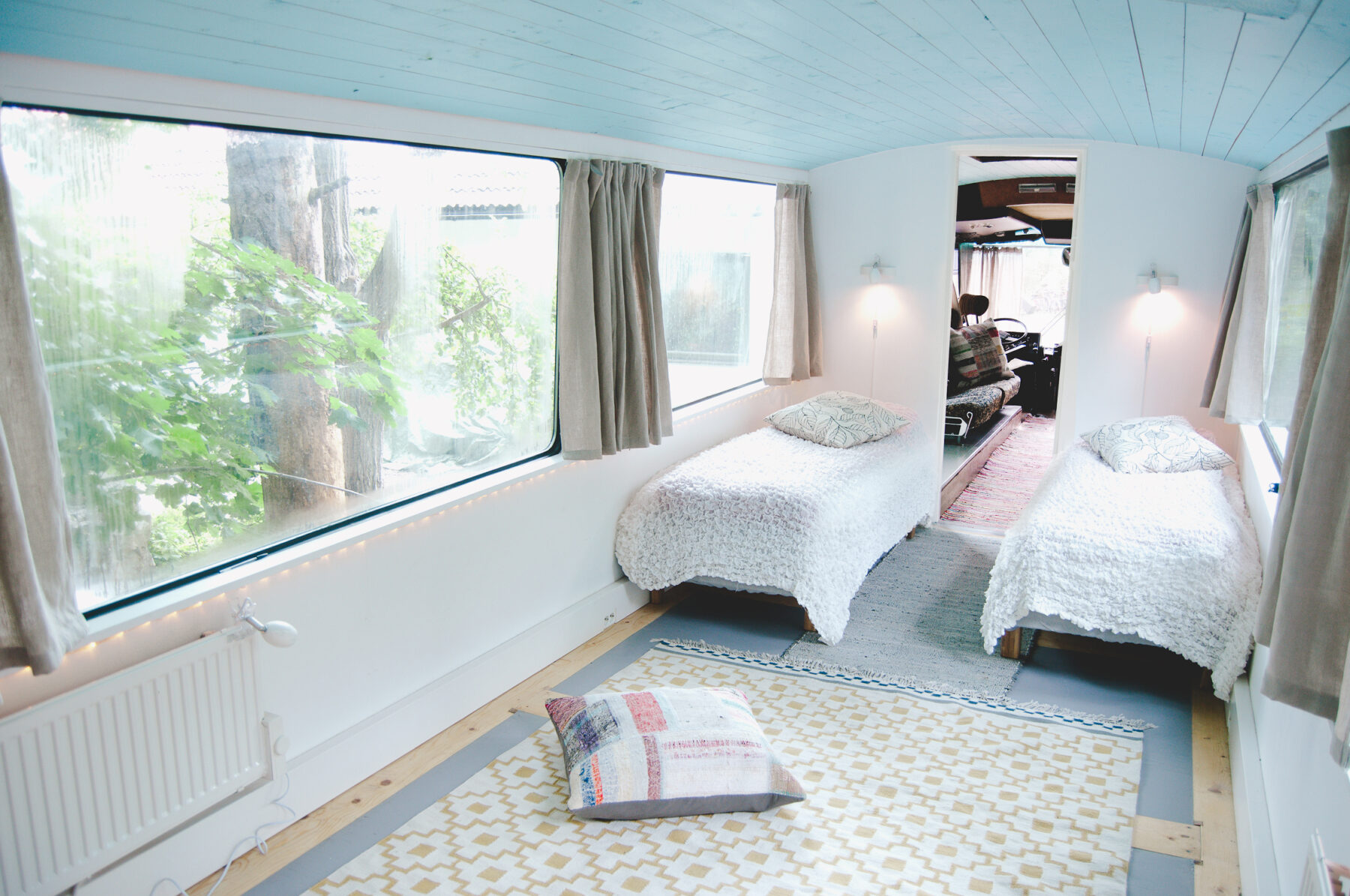 Stina: For the bus I wanted to make it simple, beautiful and Scandinavian. Initially, I wanted it to be hippie-like, as the bus is from that time in history. But then I realized that guests come here to relax. While the housing community in itself is nice it can be a little overwhelming, there are many different impressions. This is why I wanted the bus to be simpler. The interior design needed to appeal to different tastes. It’s beautiful and simple, with no singular or particular style. It’s just cozy and nice. I have this picture of Gotland – the Swedish island on the southeast coast – with sheep skin and nice wool blankets; things that make you feel cozy. Other than that, I’m interested in yoga and meditation, which is something I wanted to imprint in the aura of the bus and its surroundings. The nature combined with the bus makes you feel calm and relaxed.