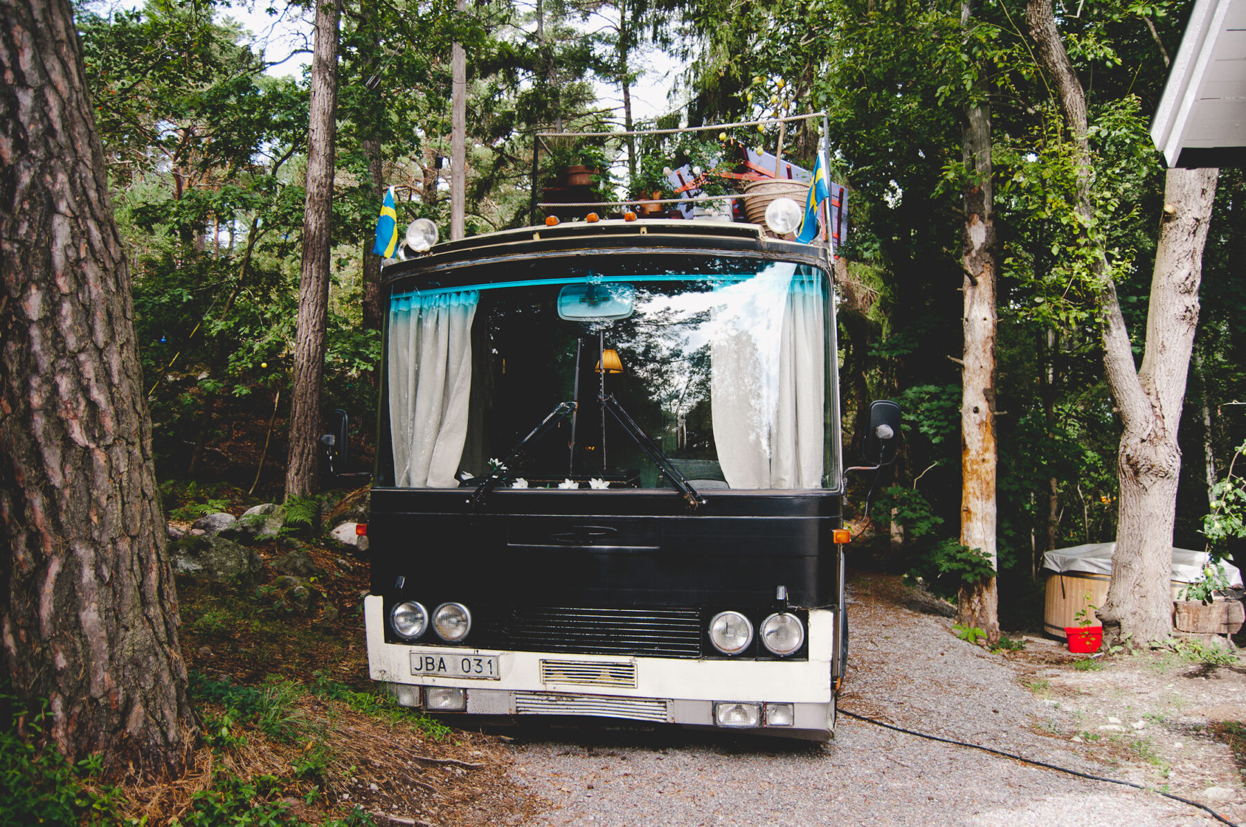 In their private lives, they give themselves a rare space to realize their creative impulses. Over the last year these energies have been put towards renovations to a 1976 school bus. Jon originally purchased the vintage bus nine years ago as a family project, something to fix up with his brothers on weekends. Last summer, Jon and Stina came up with a new vision for the bus – as unconventional lodgings for Airbnb visitors to Stockholm. Now situated next to a quiet, lush Scandinavian forest in the middle of Bromma, in one of the cities oldest alternative communities, just 20 minutes outside of Stockholm.