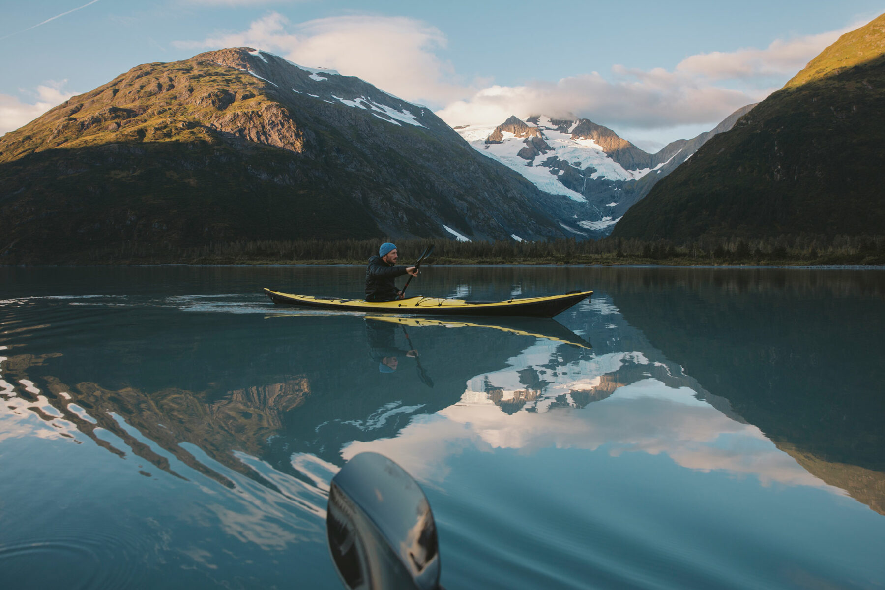 That Alaska is Alex’s favourite place to photograph comes as no surprise: The landscape is vast and disparate, a composition of never-ending blues. For him, the visual contrast of ocean and mountain, combined with the weather extremes, provide the perfect canvas for photographic exploration. His latest work, Alive in Alaska is a short film that documents this wilderness and the side of freelance life that is usually left off screen—the car-rides, the campsites, and the conversations.