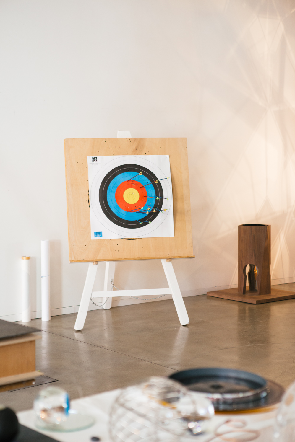 It is pretty easy going. I come in the morning and have breakfast with my son – for the time being at least because he is on summer break. At some point he gets bored of me and leaves with his friend to ride his scooter. Usually I run after them with a helmet, which again today he didn’t wear. Then I shoot bow and arrow for 20 minutes, waiting for Florian, my studio manager, to interrupt me and tell me to go to the first meeting. I have about five meetings per days, on bad days it’s eight.