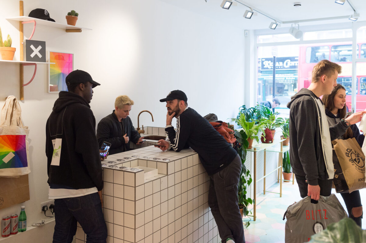 The shop itself sits at the front of the ground floor of the building. Behind is the recording studio and out the back is an alcohol-licenced garden area where local restaurant Rita’s took control during the summer. They’ve also held week-long pop-ups by materials consultancy studio Matter and musician Jamie xx. The storefront is still painted in unmissable rainbow colours from Jamie xx’s recent Good Times takeover, which – as well as selling merch and some of Jamie’s favourite records – provided live music events and broadcast radio shows every night on NTS. It’s about as lifestyle as it gets, but Romain has no problem with that. “I started out working in a skate shop back in my hometown of Champagne, and you know, kids would come in who couldn’t afford anything but just wanted to hang out. I used to BMX as well, and that’s the culture I enjoy. I want people to feel like they can hang out here and have a chat. This is a way of life for me as well as a job.”