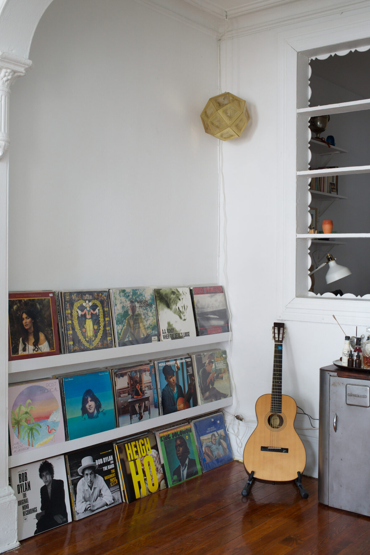 Stefanie: That’s a hard question. I tend not to hold on to things in the way that Sam does — he’s been known to fish things out of the trash that I’ve accidentally thrown away. But I do compulsively keep movie ticket stubs, cards, notes from friends — I have a folder of them. It’s completely contrary to how I treat everything else in my life. Sam: Overall, the most important items in our space are markers of certain moments in our lives. If there was a fire, we could replace the records, we could replace the books and the guitars. But we couldn’t replace those other things. We keep a collection of letters that we wrote to each other when we were in college, before we got married. It’s crazy to me to think that we have this piece of our lives from that period of time — I was 20, 21. They’ll be fun to read when we’re older — until then, I’m going to try not to look at them.
