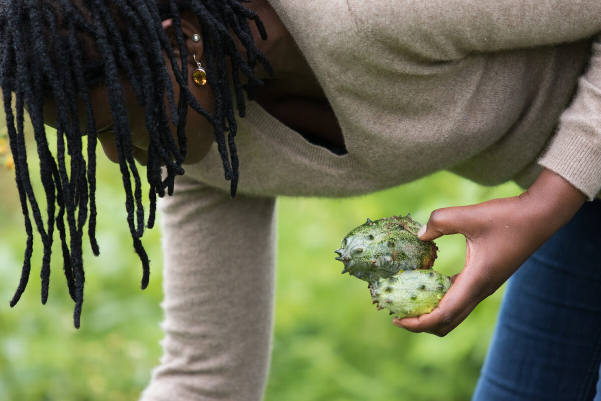A walk around the foundation’s 1.5 hectare farm is proof of the abundance and diversity mushrooms waste can support. Zimbabwean staples like pumpkins, watermelons, cucumbers, corn, three types of beans, and sunflowers brighten the gently sloping fields. Chido points out various indigenous Zimbabwean fruits and vegetables, which she carefully collects from the forests and then propagates. She is deeply concerned at how quickly these rich resources are disappearing as local people race to leave behind what they deem “poor man’s food.” Herbs of all scents and sizes attract swarms of bees and other useful garden pollinators and predators—and novelties (for Zimbabweans), like quinoa and chia, also make an appearance.