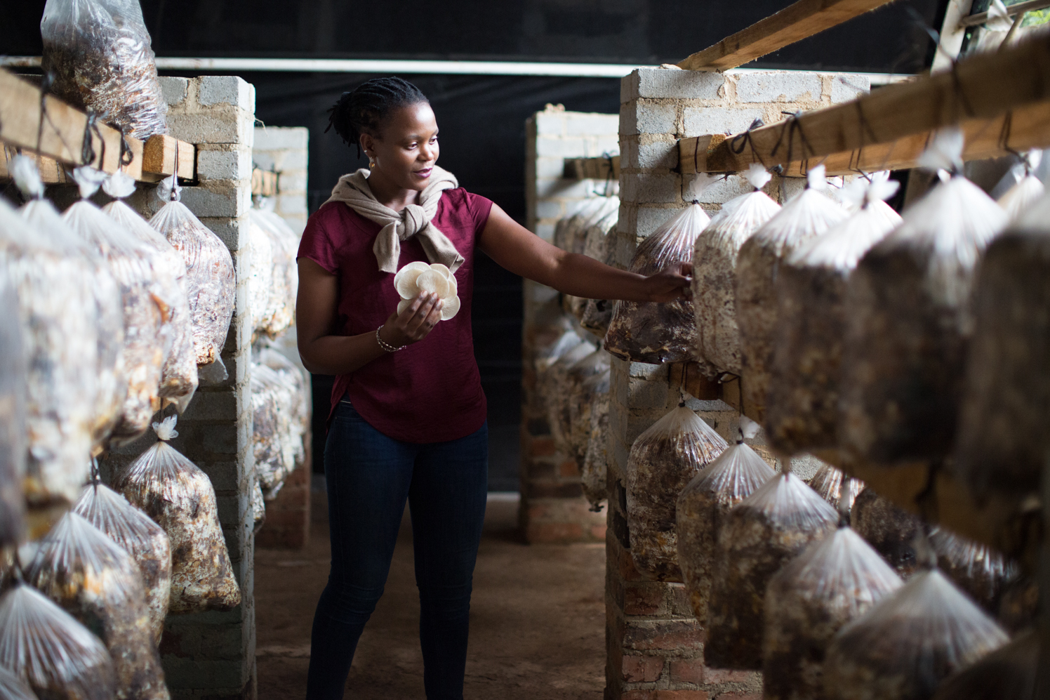 And when she’s not travelling the world learning or teaching (or delivering inspirational speeches—she’s a well sought out international speaker) she’s grounded at her base at Christon Bank in Zimbabwe’s Mashonaland Central Province. Since learning how to produce mushrooms at an early age, the charismatic young Zimbabwean has personally trained over 2,000 people from around the world—from Australia to Mongolia to Zimbabwe, from illiterate women in India to recent Berkeley graduates in San Francisco.