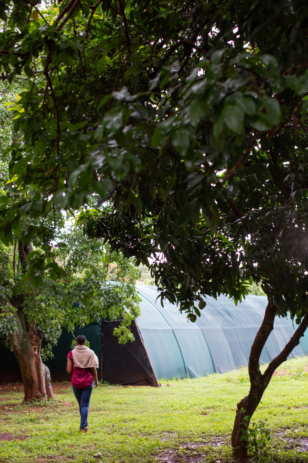 She grins and points to her vegetable beds. “There are patches here where, when you know this place well, and when you see how things are growing, the best growth is in places where we’ve been able to put lots of mushroom waste.” The waste has softened and loosened the soil, making the traditionally sticky and correspondingly bone-dry soil much easier to work. “Everything we grow here today is offering us different nutritional value in our diet. We have a model called the mushroom-and-poultry-based-integrated-food-production system which is really aimed at bringing diverse nutrition to the people.” Mushroom waste is fed to the chickens and used to fertilize the garden, waste from the chickens is put on the vegetable garden and the garden waste feeds the chickens which then provide the community with eggs and meat.