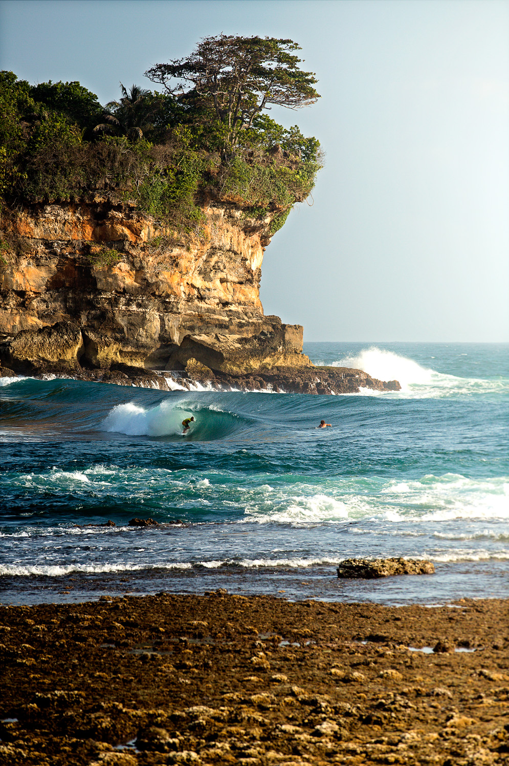 It’s hard to pick! But in terms of consistency and different moods, I’d have to go with a local one named Coxos. The wave is a rock bottom righthander that is really fun when it has three to four feet swell. But it can quickly change its happy face into a barreling monster when the ten to twelve feet swells and clean offshore winds start hitting the coast.