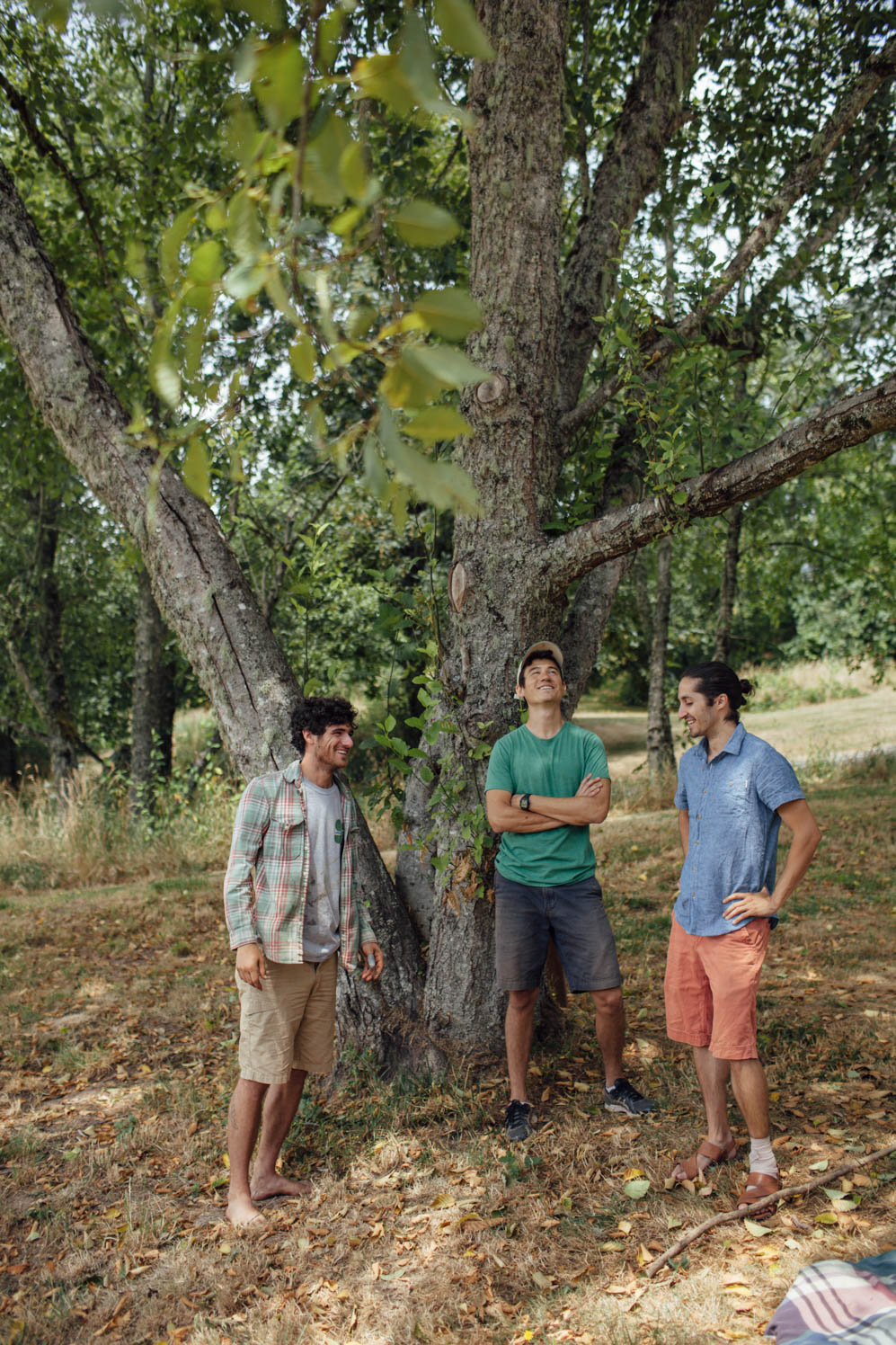 Dirt-stained jeans and t-shirts and grass-caked shorts line the long wooden farm table like a patchwork quilt. Sid Walters, Garrett Kelly and Patrick Anderson lean, stretch and yawn; greeting the new day around the outdoor dining perch. Gazing out over their three-acre organic farm in northwest Portland, Oregon the pride they feel for this space is palpable. It’s a pulsating moment of silence broken only by the squawks and quacks of their rowdy chickens and ducks.