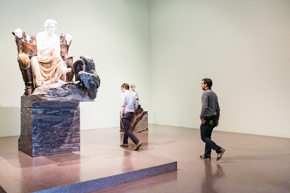 You can find this museum in Leipzig’s music neighborhood, spitting distance away from Titus’ old academy, the HGB. The Herfurthsche Villa stands diagonally on the site, connected to the Clara Zetkin Park. A modern cube was added to the exhibition rooms in 2004, a functional place with moveable partitions.